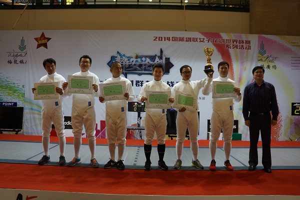 华山医院工会从8名正在参加击剑课程培训的爱好者中组织7名职工报名,由专业教练给予训练指导,并以上海医务工会代表队的资格参赛。经过各组别的预赛,关文杰等重剑男团及女团脱颖而出,踏上2014年国际剑联花剑世界杯赛的剑道,角逐上海击剑群英挑战赛白领速成组锦标。比赛中,华山击剑队团结协作,奋力拼搏,把平时掌握的技战术表现得淋漓尽致,最终夺得重剑男子团体冠军和女子团体亚军的好成绩,手外科关文杰医生夺得男子个人冠军,皮肤科王上上医生获男子个人季军,药剂科李近磊药师获女子个人第四名。