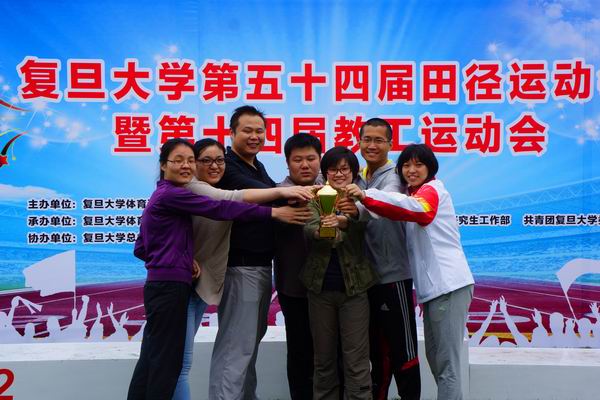 2014年5月16-17日,两年一度的“复旦大学教工运动会”再掀高潮。本届教工运动会首次与学生运动会同时举行。我院近40位职工奋勇争先,参加青年组、中年组、老年组和团体赛的所有比赛项目。在两天的比赛中,我院选手克服伤病,齐心协力,无论在开幕式还是竞赛场,充分展现了华山医院职工阳光大气、积极向上的精神风貌。最终以201分的总成绩勇夺教工运动会团体总分第三名(附属医院排名第二),并夺得2枚金牌、1枚银牌、4枚铜牌等多项好成绩。