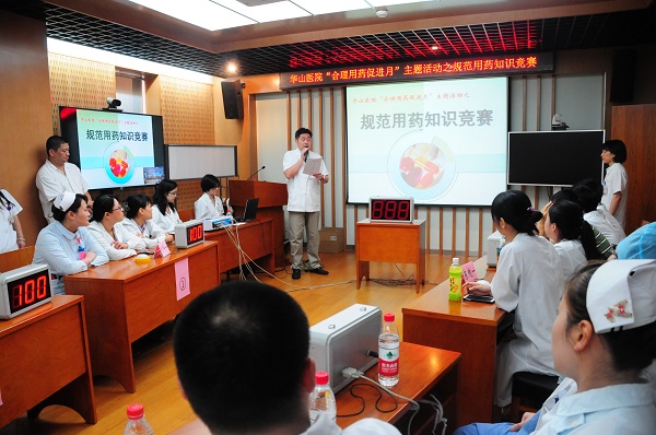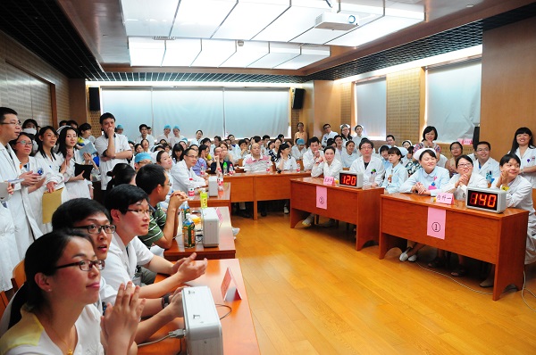 2014年7月31日下午,由院工会和医务处、药剂科联合主办的“规范用药知识竞赛”得到覆盖临床科室的所有部门工会的积极响应,共有包括东院两支队伍、北院内外科两支队伍在内的20支参赛队同场比拼。赛前,选手和啦啦队都认真复习了“合理用药促进月”前7次讲座的学习材料,使整个赛事精彩纷呈。经过初赛、复赛和决赛三轮比赛的较量,最终感染科部门工会获得第一名,东院二队、神经外科、门急诊部门工会并列第二名,东院一队、中医科、外科二、外科四部门工会获得第三名,其余12支队伍获得优胜奖。值得点赞的是,由钟明康、蒋红、胡祖鹏、刘杰、祝禾辰、林东昉、刘倩、李骥组成的评委团对一些较难易错的概念作出了详尽专业的点评,使大家受益匪浅。马昕副院长和王惠英处长也莅临赛场,对赛事如此高的关注度和参与率给予高度评价,知识竞赛的成功举办为本次“合理用药促进月”活动划上圆满的句号,期待同工会在未来职工临床技能提升方面有更好的合作。