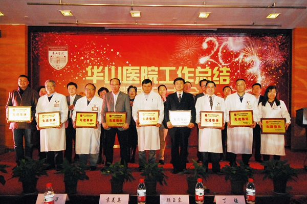 2014年1月28日下午,华山医院门诊12楼会议厅张灯结彩,人声鼎沸,长枪短炮加手机,奖牌奖状与贺信,2013年总结表彰大会在这里隆重举行。丁强院长、顾小萍书记率院党政班子悉数出席,我们的老党委书记袁美英书记也身着红装,神采奕奕地来到会场。丁院长慷慨主持,激越的国歌奏响开场序曲,《2013,成就每个梦》电视短片把我们带回追梦的2013年,每个人的脸上都漾着笑意。顾书记诗朗诵般地宣读表彰决定,汪志明、邵建华、靳建平副院长、耿道颖副书记、马昕、毛颖、徐文东副院长分别宣读了华山医院先进集体、优秀人才培养奖励计划考核优秀名单、华山医院九“十佳”名单、国家级、部市级先进集体名单、优秀个人名单、国家级、部市级医教研各类获奖名单、各类部市级人才培养计划名单、入选华山医院优秀人才奖励计划名单和十佳学生、优秀员工名单。欢快的乐曲声中,院领导为获奖的集体和员工颁发了奖牌和奖状。