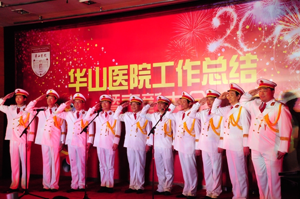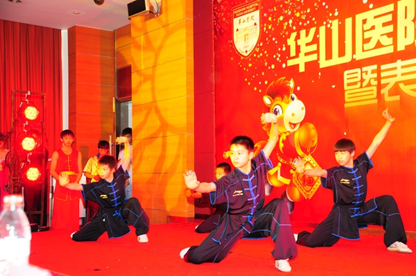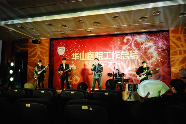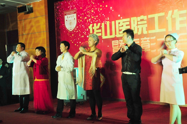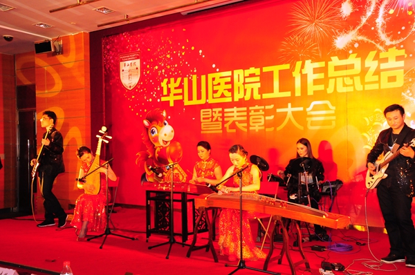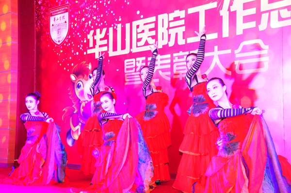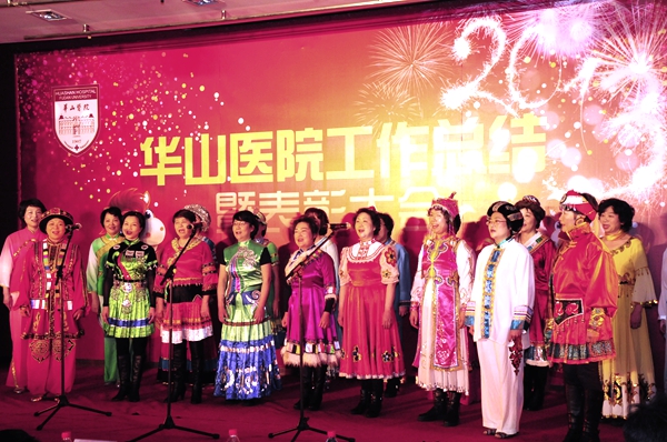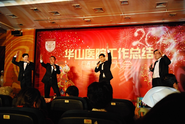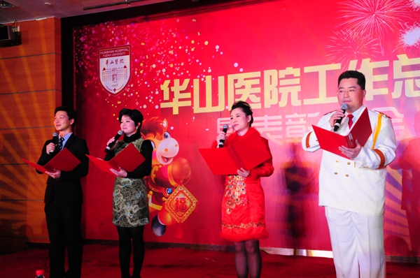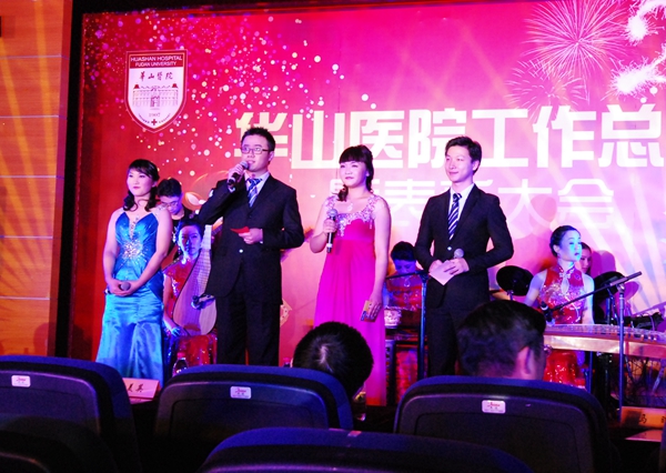总结表彰大会后,是华山人期盼的华山春晚。由华山艺术团民乐队、电声乐队、合唱队、舞蹈队、语言与表演社团、团委王老虎工作室以及上海武术院、上海歌剧院联袂奉献的精彩节目高潮迭起,新老节目主持人更是为整台节目增添亮彩。上海市医务工会常务副主席张浩、副主席何园、上海歌剧院副院长李瑞祥、纪委书记兼工会主席朱霞珍等嘉宾应邀观赏了整台文艺汇演。