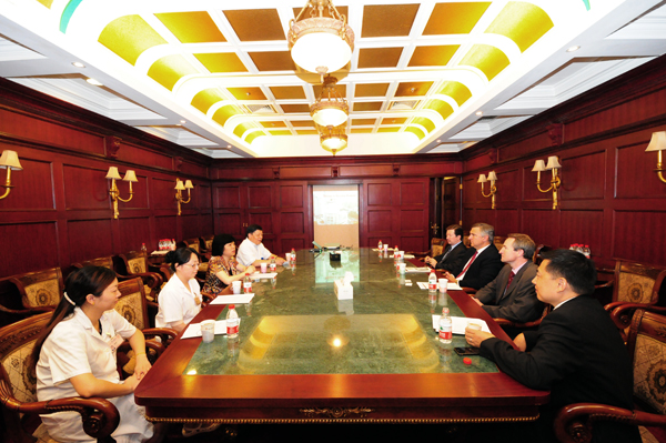 7月13日上午,世界最大的生物技术公司——Amgen公司总裁兼首席执行官Robert A. Bradway先生率公司负责亚太及中国市场的高管等一行5人来院访问交流。我院邵建华副院长、对外合作交流办林建华主任等在哈佛楼贵宾室热情接待了总裁一行。 邵建华副院长对Amgen公司此次来沪选择到访华山表示欢迎与荣幸,并为来宾们详细介绍了医院总体概况、科教研发展及重点特色学科建设等情况,并就来宾们感兴趣的问题进行探讨。Bradway总裁表示,Amgen公司一向很关注中国医药学的发展,此次能亲临中国的医院和医疗机构,有机会深入了解中国的医疗发展及重大疾病需求,将有利于更好地将Amgen整体引入中国市场。邵副院长表示,华山医院向来注重与生物制药企业的联系合作,以促进临床与科研相结合,更好地推动转化医学的发展,尤其希望在中枢神经系统、肿瘤及肾透析等方面,建立起医、教、研、产合作的示范基地。 |