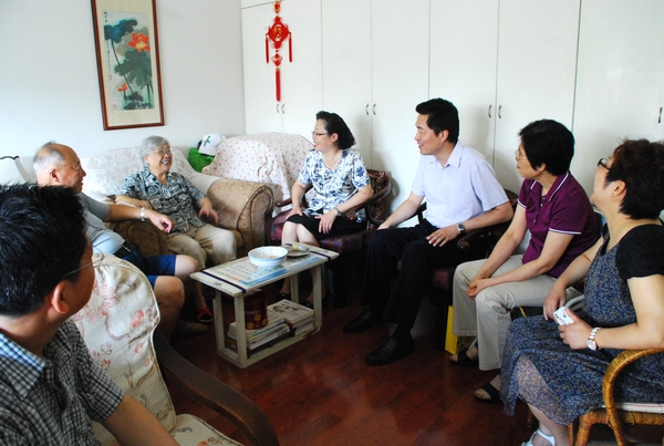 盛夏高温之际,医院党政领导十分关心曾经为华山医院发展做出过重要贡献的离退休老干部,为此,8月17日上午,党委顾小萍书记、钱飚副书记与党办、退管会负责人等一行先后走访看望了退休在家的袁美英和卧病在床的林平两位老书记。 在袁美英老书记的家中,院领导关心地询问了她和老伴的身体和生活情况,并为他们送上了夏令水果等慰问品。虽然已经退休十几年,但袁老书记对于医院的发展依旧十分关切,在顾书记向她详细介绍了北院建设的最新情况及西院发展的远景规划后,老书记感到十分兴奋,连声称赞,并希望华山医院在本届领导班子的带领下不断地再创佳绩。