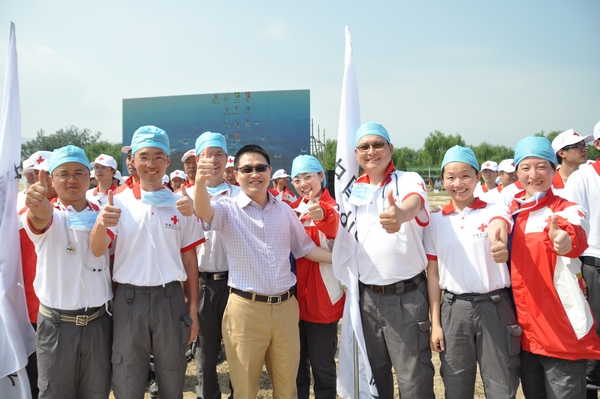 (华建敏会长与我院演练队员亲切握手 丁院给予此次演练高度评价) 9月8日晚11时,我院红十字应急救援队赴京演练队伍胜利凯旋。 就在10个小时前,这支队伍刚刚接受了中国红十字会领导的检阅,并在20余个亚太国家和地区的中外红十字会嘉宾的注视下成功完成了90分钟的应急救援演练,获得满堂喝彩。 9天前,这支队伍进驻北京郊外的中国红十字会总会训练中心培训基地,他们克服各种生活上的困难,在艰苦的条件下接受了长时间的封闭式培训与排练。这是这支队伍在关键时刻“演出风格,练出水平”的关键。 早在一个月前,医院就收到中国红十字会《关于在9月8日组织开展亚太国家和地区红会合作论坛的通知》,通知要求我院派出精干力量与中国国家救援队所在的武警总医院共同完成论坛开幕式上的野战医院救援演练环节。届时,全国人大常委会副委员长、中国红十字会会长华建敏,中国红十字会特别顾问彭珮云等领导人将亲临论坛开幕式,包括红十字与红新月会国际联合会主席近卫中辉先生在内的20余国外宾、各个国家部委防灾减灾的负责人也将集体观摩开幕式上的应急救援演练。这次演练将涵盖搜救、转运、医疗、赈济、治水、心理、公共卫生等救援环节,集中展示中国红十字救援的最佳装备与最高水平。 接到任务后,医院分管红十字工作的邵建华副院长高度重视,亲自召集动员会议,指示所有队员和院红十字办公室要在情节设计、道具准备和台词凝练等方面苦下功夫。她指出,全体参演队员要做好吃苦的准备,尽全力配合红会有关部门组织好整场演练,并在与兄弟医院良好协作的同时,彰显自身的特色,争取“演出风格,练出水平”,真正为医院的红十字救援积累一定经验,也以这一次的实践为华山的红十字品牌做好宣传。 此后,参演队员与红十字办公室的工作人员不厌其烦地与红十字总会及武警总医院方面沟通脚本、协调道具,为的是尽可能将情节设计得更合理,将应急医疗救援的功能展示得更全面。 8月31日至9月8日,参演的8名队员住在条件简陋的集体宿舍里,仿佛穿越到了多年前的大学校园。他们克服生活上的种种不习惯和不方便,团结协作,精神饱满地在一片杂草丛生的荒地上用自己的双手搭建起了小型野战医院规模的帐篷群。为了让演练用的野战医院更逼真,他们想方设法将各式各样的道具带到千里之外的北京——医疗器械、手术铺巾、手术衣、输液皮条、应急通讯装备、模拟婴儿……以至于当队伍过机场安检时,检查人员频频要求开箱,因为他还没有见过有乘客“带这么多奇奇怪怪的东西”,当然,除了“奇奇怪怪”的东西,队员们始终没有忘记将华山的元素带去北京——华山红十字旗帜、华山LOGO贴纸,华山LOGO的病历夹,以及有着巨大华山LOGO的氧气袋、床单…… 十天的磨砺终于在9月8日“世界急救日”当天揭开面纱,精彩呈现。这一天,丁强院长受邀亲临演练现场,给予了全体队员莫大的鼓励。他早早便来到队员们中间说:“预祝你们演练成功,我会一直在场边为你们鼓掌”。在正式的演练现场,我院的参演队员以饱满的精神状态、熟练的技术动作、精湛的串场设计、感人的现场对话频频受到演练导演组的青睐——现场有9支队伍、7台跟拍摄像机,但导演现场切换呈现在大屏幕上的镜头始终在给华山队员与华山医院的标识大大的特写。演练结束后,全体嘉宾起立鼓掌,全体演练队员更是受到华建敏、彭珮云等领导同志的亲切接见。 当晚,中华人民共和国中央人民政府官网刊发新华社记者报道,以“中国红十字华山医院医疗救援队医务人员在为‘伤者’做手术”为巨幅配图和说明,报道整个演练过程。不得不承认,“招之即来,来之能战,战之能胜”确实是华山人深入骨髓的风格,而从众多演练队伍中“脱颖而出”的背后,不仅仅是为一个多小时的演练所花费的数昼夜心血和参演队员长时间的坚持与专注,更是强大的华山精神的支撑。
