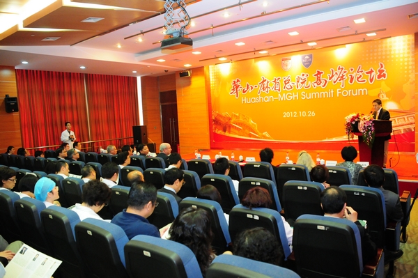 10月26日下午,由华山医院主办的“华山—麻省总院高峰论坛”在医院12楼会议厅隆重举行。来自上海市卫生局的领导、美国麻省总院(MGH)的专家共聚华山,共同探讨医院发展的经验与设想。华山医院领导、相关职能部门、科室的负责人以及曾赴哈佛、MGH学习交流的医护人员等200余人参与了此次论坛。 论坛由邵建华副院长主持,上海市卫生局黄峰平副局长、华山医院丁强院长分别为论坛致辞。开幕式后,学术交流报告正式开始。黄峰平副局长结合中国医改,用详实的数据介绍了上海医疗卫生的发展情况,与在座专家同仁分享了上海医疗的发展成果与未来展望。MGH院长Peter Slavin教授、外科名誉主任Andrew Warshaw 教授以及MGH副院长兼护理部主任Jeanette Erickson教授也分别就《MGH如何成长为美国最佳医院排名第一》、《临床医师的能力培养与不断完善》和《护理团队保障医疗安全的重要性》与华山同道分享了相关经验与深入思考,让在座的医护人员收获颇丰。 作为美国哈佛大学最大的附属医院以及全美最佳医院排名第一的医院,MGH所代表的创新、服务和管理水平值得华山医院借鉴与学习。早在2004年,华山医院就与MGH缔结为“姐妹医院”,并一直保持着良好的沟通。8年来,双方在人员培训、技术支持、学术交流等方面进行了诸多实质化的合作,这大大助推了华山的品牌建设和人才培养的进程,也有力促进了华山向“国际化精品医院”目标的迈进。 |