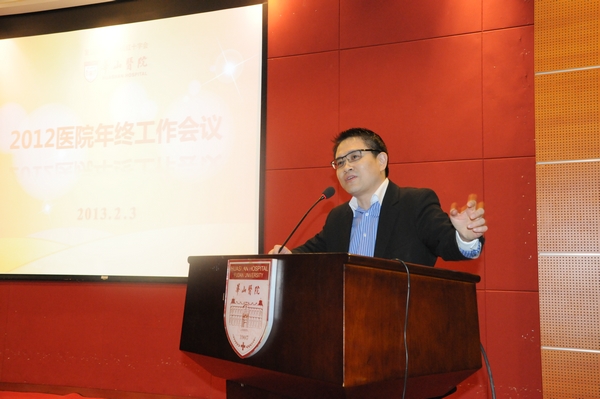 2月3日上午8点30分,华山医院2012年终工作大会在门诊12楼会议厅举行。顾玉东院士、周良辅院士、丁强院长、顾小萍书记以及院党政领导、中层干部200余人出席。 2012年,华山医院取得了不菲的业绩。全年门急诊超过340万人次,住院超过6.2万人次,手术超过3.3万人次。新增卫生部临床重点专科7个,使我院总数达16个。获纵向科研项目179项,总经费超1.2亿。拥有15个上海市住院医师规范化培训基地。荣获全国医药卫生系统创先争优活动先进集体等多项集体和个人重要奖项。北院开张、西院奠基,JCI复评审一次性通过并成为全球首家获JCI教学医院认证的医院。在追求卓越的道路上,华山人一步一个脚印走得很踏实。46个临床和医技科室主任依次汇报一年来的工作,创新叠现,精彩纷呈,会场上不时响起赞许的掌声和深有同感的笑声,为华山人的智慧和激情。最后,神经外科、手外科、泌尿外科和康复科获得外科系统综合考核前四名,感染科、内分泌科、抗生素研究所和肾病科获得内科系统综合考核前四名,检验科、PET中心、放射科和药剂科获得医技系统综合考核前四名。肾病科、神经外科、感染科、老年病科和抗生素研究所分获医疗、科研、教学、精神文明和绩效单项考核优秀,周良辅院士、顾玉东院士、张文宏、李益明、吕元和许震生主任获得优秀科主任称号。 |