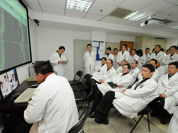 2月8日早晨7点半,华山医院骨科示教室里早交班正井然有序地进行着,但不同以往的是,这是总院骨科与北院骨科的首次共同交班——利用网络视频软件的实时传输,配以旋转摄像头及高清投影仪,四十多名分散在两院的骨科医师就各自的急诊病例及手术患者病情进行着逐一汇报和集体讨论,两地宛若同席。 自去年12月华山北院开张后,骨科紧跟医院步伐,选派了各层次的医师前往北院开展临床工作,并很快开始收治手术患者。医疗工作在同步进行,但如何在管理上也做到同质化、“下好两地一盘棋”,既使两院患者可以享受到无缝对接的优质服务,也使两地医生在医、教、研各方面都能随时得到全科的支持,成了骨科主任姜建元教授思考的问题。由于两地相距甚远,病人信息无法共享,总院及北院的医师很难就患者病情进行共同分析与讨论,科室因此急需构建起一条资源互通、信息共享的渠道。 于是,经过2个多月的规划与筹备,在信息科的大力支持下,今年2月初,两院骨科同时安装了带宽20兆的专用宽带,并进行了其他硬件设备的全面更新,当两院医师身影出现在彼此屏幕上的时候,15公里瞬间缩短到咫尺。如今,利用视频传输,不仅两院骨科每天早交班做到实时同步、全科医生能共同进行讨论、交换意见,更可以进行科室会议、及时地传达医院的各项重要精神与指示,使同质化管理做得更好更完善。在骨科小小的示教室里,华山两院“同质服务、无缝对接”的公益承诺被落到实处,得益的除了医生,更是两地的广大患者百姓。 (上图分别为总院及北院骨科的早交班现场) |