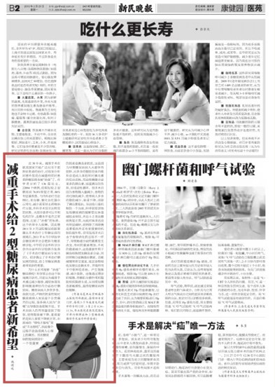 减重手术给2型糖尿病患者新希望 姚琪远 近30年来,减重手术在欧美国家开始广泛应用于肥胖症患者的治疗,对结果分析时意外发现在减重的同时患者的糖尿病也被“治愈”了。有学者分析了136篇论文,22094个病例,结果发现:2型糖尿病76.8%恢复正常,86%有显著改善。与内科治疗方法相比,在血糖、糖化血红蛋白正常化、减少甚至停止药物治疗方面,外科手术显示出明显的优势。大部分患者可以不用吃药打针,血糖水平也在正常范围,达到了“治愈”的标准。这个结果令人鼓舞,因此继2011年3月国际糖尿病联盟确认手术治疗2型糖尿病的效果后,2011年6月中华医学会糖尿病学分会肥胖与糖尿病学组,中华医学会外科学分会内分泌外科学组联合发表了《手术治疗糖尿病专家共识》,初步确立了手术治疗糖尿病的指征,给2型糖尿病患者带来新的希望。 为什么手术能够“治愈”糖尿病呢?科学家正在这个领域展开研究,目前认为减重手术通过减少摄食、减轻体重及影响肠道神经内分泌治疗糖尿病。糖尿病病人多饮多食,食欲亢进,严格的饮食控制对糖尿病病人来说是个非常痛苦的过程,很多病人因为“贪嘴”而导致饮食控制不佳。手术后病人的胃容量受到了限制,使得摄食量下降,更重要的是病人食欲下降到正常,由原来的“想吃不能吃”变成“不太想吃”,因此整个过程不会造成病人心理上的痛苦。其次糖尿病的发病原因中一个很重要的因素是胰岛素抵抗,这是因为早期糖尿病病人大都伴有肥胖,而多余的脂肪在体内堆积会造成人体组织对胰岛素的反应迟钝,而迫使胰腺分泌更多的胰岛素,加重胰岛的负担,形成恶性循环。而手术后因为食物摄入量减少,食物的消化吸收减少,使得病人多余的脂肪减少,体重下降,消除了胰岛素抵抗。但这些只是机制的一个方面,科学家惊讶地发现糖尿病的缓解要比体重减轻来得快,术后1~2周血糖就恢复正常,而此时体重还没有明显减轻,说明除了消除胰岛素抵抗外还有更重要的机制在起作用。研究发现手术后由于食物消化的过程不一样了,导致肠道分泌的激素发生改变,有利的激素增加,不利的激素减少,这些激素作用于胰岛细胞增加胰岛素分泌,同时抑制分泌胰高血糖素。还能减慢胃排空速度,延迟食物吸收及餐后血糖水平。并能作用于中枢神经系统,产生饱胀感、减少食欲。还能通过增加肝细胞、骨骼肌生糖作用和脂肪组织脂质生成,从而增加胰岛素敏感性,最终使糖尿病得到缓解。 (作者为复旦大学附属华山医院外科教授;每周四专家门诊,每周二下午减重及代谢外科专科门诊。3月2日8:30~11:30,华山医院在医院花园大厅举行肥胖症和2型糖尿病微创手术治疗科普咨询)  |