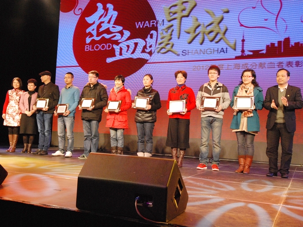 在2月27日举行的“热血暖申城——上海市成分献血表彰会”上,我院因积极组织开展成分献血活动,荣获第六届成分献血推进奖。同时受到表彰的还有血液科陈勤奋和团委沈芳芳,她们分别荣获“成分献血热情奉献奖”和“成分献血同伴招募奖”。上海市卫生局郑锦副局长、上海市红十字会马强常务副会长和李明磊副会长、上海市志愿者协会办公室黄宗明副主任、上海市血液中心朱永明主任和王英书记以及上海市血液管理办公室朱跃国主任等领导分别为获奖单位和个人颁奖,院办唐弘代表志愿者主持了表彰会。 2012年是本市开展成分献血的第十个年头,从最初2002年单采血小板的56袋到2012年的24240袋,10年的时间,“成分献血”从一个陌生的名词渐渐为大家所知晓。华山医院志愿者在2002年就开始成分献血,2010年起更是组成了无偿献血志愿者服务队,已经多次集体捐献单采血小板。 |