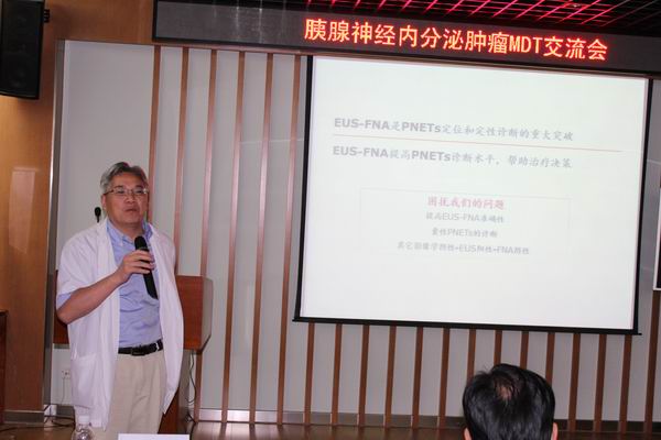 8月27日下午,由胰腺外科主办的胰腺神经内分泌肿瘤(pNEN)多学科协作交流会在6号楼4楼大会议室举行,来自胰腺外科、病理科、放射科、肿瘤科、消化科和内分泌科等多位专家做精彩报告,相关科室医生、基地学员和研究生约80余人参加,胰腺外科主任傅德良教授主持。交流会得到了教育处和医务处的大力支持。 胰腺外科李骥副教授首先介绍了pNEN规范化诊治的概况,使大家对该疾病有了初步的认识;病理科唐峰教授介绍了WHO最新的病理分型和分期以及病理诊断中的新进展;放射科梁宗辉教授和胰腺外科金忱教授分别从影像学和超声内镜方面讲述了pNEN的诊断和鉴别诊断要点;肿瘤科梁晓华教授阐述了该病的内科规范化治疗,特别是长效生长抑素类似物以及分子靶向药物的应用大大改善了患者的生活质量,提高了生存期;消化科戎兰副教授介绍了胃肠神经内分泌肿瘤(GI-NEN)的诊治要点;胰腺外科狄扬博士分享了2个pNEN疑难病例,带动与会者热烈的讨论;最后傅德良教授和消化科钟良教授作了精彩的点评和总结。 近年来,神经内分泌肿瘤的发病率逐年增高,特别是乔布斯先生因为罹患此病而英年早逝,使其日益受到医疗专业人士的关注。由于该病异质性高,临床表现多样,可有低血糖、癫痫、皮疹、腹泻等不同症状,极易被误诊,诊疗过程需要外科、内分泌科、肿瘤科、消化科、放射科、病理科等多学科密切协作。我院曾于2011年举办过pNEN多学科交流会,近年来该病的基础和临床研究新进展层出不穷,此次交流会更新了大家对该病的认识,并通过病例分析和讨论,探讨规范化诊断和治疗。胰腺外科将牵头建立一支胰腺疾病诊治的多学科协作团队(MDT),近期将开设胰腺疾病的MDT门诊,改进我院胰腺疾病特别是pNEN的诊疗流程,实现挂一次号就能得到多个科室专家的专业诊治,减少患者来回奔波次数,降低误诊和漏诊率。 |