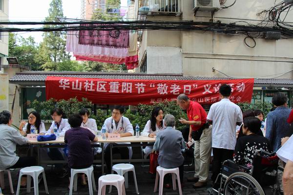 9月25日一早,由我院教育处研究生科朱春艳老师带队,博士生宣讲团联合研究生党支部来到华山社区老年人日间服务中心“阳光之家”,为社区居民开展重阳节“敬老日”义诊活动。来自血液科、消化科、神经内科、神经外科、胸心外科等学科的20余位优秀青年医师为100多位社区居民提供了义务健康咨询和诊疗服务。2个半小时的服务,现场气氛始终融洽热烈。在华山居民眼里,华山医院就是身边的医院,华山医院的博士医生尽管年轻,但有问必答,善解人意,细致贴心。能得到家门口的医疗服务,就是这些小医生带给他们的福分。 其实,华山医院博生生宣讲团与华山社区的情分由来已久。除了不定期的上门义诊,医学博士们还常年坚持为社区居民进行各类健康科普讲座。医路漫漫,一届又一届的博士生们在不断的志愿服务中体验患者病痛,感受播撒爱心的快乐。 |
