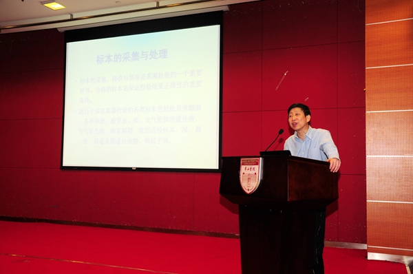 11月10日下午,2014年度院感宣传周在门急诊12楼会场开幕,丁强院长、顾小萍书记等医院领导班子、各临床医技科室和行政职能部门主要负责人、护士长、支部书记、部门工会主席等出席开幕式。 主持人马昕副院长代表医院肯定和感谢过去一年中全院同仁在院感方面做出的努力和贡献,并宣读了8个院感先进集体名单以及30位先进个人获奖名单,医院领导为获奖集体代表和先进个人颁发了荣誉证书。随后,院感科李光辉主任介绍了当前国内外院感防控形势,报告了今年我院院感工作的现状和目标,并介绍了本次院感宣传周的学术活动安排。 本届院感宣传周在总院、北院、东院和上房分部同步开展,既保证覆盖面广,同时又具有专业针对性。总院、北院主要面向临床医师、药师、护士、护工以及工勤行政人员开展系列报告讲座,内容涵盖真菌检验标本的采集诊断、耐药菌感染的防控、消毒剂的使用管理以及护理工作中的感控问题等等。今年东院首次采用了视频实况转播的方式,远程参与总院的所有培训讲座,做到同步学习、共同探讨。上房分部则主要面对无医学背景的行政、工勤、护工人员开展感染与防控基础知识的培训讲座。 当日中午,第一场院感宣传周学术报告在12楼会场举行,由我院抗生素研究所常务副所长王明贵教授主持,皮肤科章强强教授带来了题为“真菌检验标本的采集及其诊断价值”的精彩报告。章教授的报告关注前沿,并辅以大量的临床图片阐释说明,听众收获颇丰。