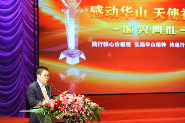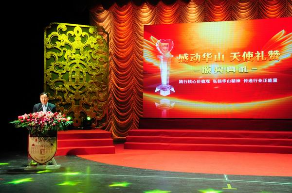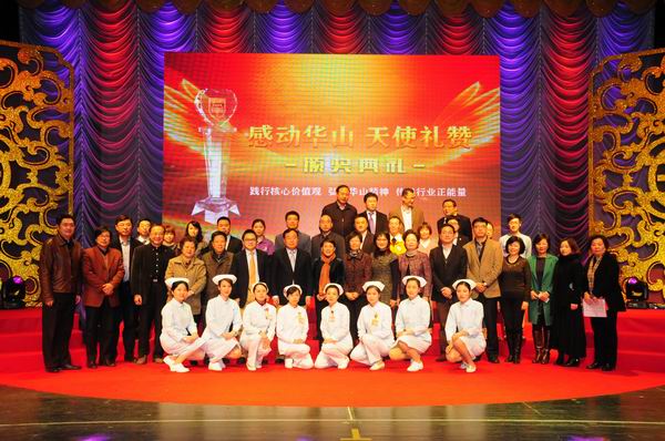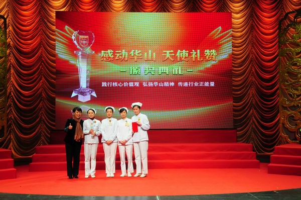 1月5日下午,一台意为践行核心价值观、弘扬华山精神、传递行业正能量的“感动华山 天使礼赞”颁奖典礼在中福会马兰花剧场隆重上演。9个获奖者或为个人,或为夫妻,或为集体,他们每天在努力做的事情,被身边的同事挖掘,感动着华山,也感动着我们的社会。应邀出席颁奖典礼的领导有上海市文明办宋慧副主任、上海市卫计委党委黄红书记、上海市红十字会党组高解春书记、复旦大学副校长、上海医学院院长桂永浩教授、复旦大学党委刘承功副书记、静安区夏以群副区长、复旦大学克卿书院彭裕文院长、上海广播电视台电视新闻中心党委李培红副书记、静安区首席人民调解员柏万青阿姨,以及来自上海市卫计委新闻宣传处、上海市医务工会、上海市卫计委医政医管处、复旦大学宣传部、复旦大学组织部、复旦大学医管处,和静安区卫计委、静安寺街道、上海交响乐团、上海歌剧院的领导,上海市各大医院的领导、各大新闻媒体的朋友们。华山医院丁强院长、党委顾小萍书记率班子成员、职能处室领导、党支部代表、部门工会代表、基地学员、研究生等400多人接受了一次感动的洗礼。