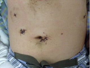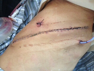 (微创手术胸部3个孔) (微创手术腹部4个孔)