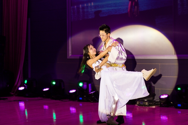 my life》,台上,贝斯、吉他、架子鼓,动感十足,劲力十足,台下,踩着鼓点,击掌和拍,观众的热情被一次次点燃,场上气氛一度达到高潮。激情过后,气氛依旧火热,小品《一个熟悉的故事》,让大家从激情似火的状态直接进入捧腹大笑的模式,熟事出新章,流行有新解,很小的故事却有很大的文章,寻常故事也可演绎得跌宕起伏,妙趣横生,笑点十足,笑声不断。小品之后,是舞蹈《白玫瑰与红玫瑰》,这是一个中国古典舞与西班牙爵士舞的完美衔接,先是行云流水、柔中带刚的中国古典风舞剑,然后是火爆热辣、活力四射的西班牙爵士舞,两种不同的风格,同样倾心的表演,不管是哪一个,都让观众狠狠的饱了一把眼福。接下来是舞台剧《新白娘子传奇》,它向我们讲述了一个不一样的断桥神话,女子的婀娜身姿,男子的阳刚柔弱,极富表现力的舞蹈,夸张而搞怪的动作,台上搞笑不断,台下掌声不停。整场晚会高潮不断,互动十足,节目表演之间,穿插着很多抽奖环节,激动人心的抽奖公布,总能把晚会一次次推向高潮,丰厚的奖品与大家美好的期待是晚会的又一道美丽风景线。最后一个节目是歌曲串烧,青春洋溢的歌声,欢快愉悦的节奏,还有神秘嘉宾姜昊文处长及张成峰老师的精彩加盟,晚会在一曲《老男孩》的合唱中完美落幕。