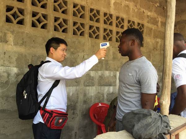 相比前两批,陈教授所在的第三批任务更加艰巨,培训工作从首都地区扩展到疫情形势严峻的边远省份,道路交通、食宿条件、培训场所等条件都非常简陋。而且,这是我国首次在西非组织综合防控项目,面临诸多挑战和不确定性。陈教授说,尽管有些队员时差还没有完全倒过来,但任务一宗接一宗地扑面而来。至今,他已参与了3个示范区保健站援建的基础状况调研工作、示范区内埃博拉密切接触者的跟踪随访工作以及基层群众的培训工作,还担任队员的保健医生,制定了队员在塞时的疟疾防控措施。