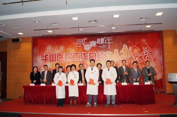 2月16日下午,2014年华山医院工作总结暨表彰大会在门诊12楼会议厅隆重举行,院领导丁强院长、顾小萍书记、汪志明、邵建华、马昕、毛颖、靳建平、徐文东副院长、邹和建、耿道颖副书记,以及职能处室、临床、医技科室负责人、支部书记、部门工会主席、护士长、获得各类奖项的先进集体代表和个人近300人出席。