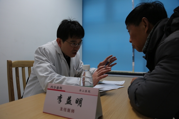 3月5日学雷锋日一大早,来自内分泌科的李益明主任、消化科的刘懿副主任医师、呼吸科的王桂芳副主任医师、皮肤科的汤芦艳副主任医师、神经内科的赵桂宪和王政主治医师、心内科的潘俊杰主治医师以及骨科的吴建国主治医师等8位专家在党委顾小萍书记的亲自率领下,冒着严寒来到金山医院,开展第6次“华山医院与金山医院结对帮扶医疗咨询活动”。