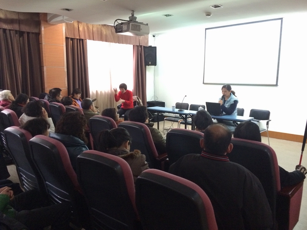 当日,在静安区残联活动中心,我院华馨家园志愿基地和静安区残联携手举办的爱心助残服务也在火热进行中。自2014年8月我院党委与静安区残联签约,为静安区残疾人提供就医服务绿色通道以来,助残服务已成为华馨家园志愿工作的一部分。在今年的学雷锋日,系列“助残慢病管理”活动拉开了序幕,华馨家园志愿者为社区30多名残疾居民带来了一场健康科普“常见慢性病的预防与管理”讲座。医院护理党支部的庄鵷老师带来了“安你心,管住嘴”的科学方法,指导残疾居民们如何健康饮食,控制体重。随后,刘华华老师则讲述了如何“双管齐下,远离卒中”,告诫大家要及时辨识脑卒中发病症状,尽早治疗,并改善生活习惯。考虑到聋哑居民在沟通上的特殊形式,残联为本次活动安排了手语老师,全程协助,使大家能够全面地获得信息。讲座结束后,医务社工部还安排了志愿者与残疾居民互动体验,通过单手脱、穿外套体验“中风”感,大家对卒中的危害有了更直观的体验;志愿者们协助残疾居民完成自己的个性化饮食日记后,两位授课老师给予点评和建议,让大家知道该如何调整饮食习惯。