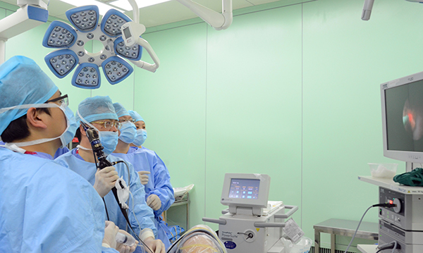 吴忠教授带领其团队,在丁强院长的大力支持下, 2009年就率先在华山医院开展了此项新技术,成为国内较早开展此项技术的单位之一。由于该项技术高效、安全、创伤小、恢复快,深受广大病人的欢迎。几年来,通过大量的临床实践,积累了丰富的经验。2014年12月,在第12届亚洲泌尿外科学术大会上,吴忠教授应邀作为大会Faculty,在会上作了相关的大会发言,受到了与会各国代表的热烈反响和一致好评。