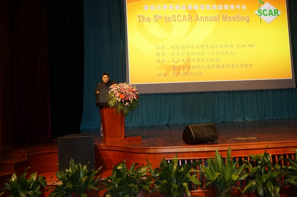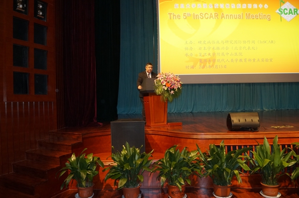 InSCAR成立于2011年2月,第五届InSCAR会议开幕式由InSCAR副主席邹和建教授主持,InSCAR指导委员会委员、复旦大学副校长金力院士致开幕辞。金院士在致辞中肯定了InSCAR成立4年来,借助于这一联盟平台,复旦大学和美国德克萨斯大学、日本国立成育医疗研究中心、韩国国立首尔大学医学院以及河北以岭医院等在硬皮病这一自身免疫性疾病中最难治疗疾病的发病机制、诊断治疗方面合作所取得的研究成果。