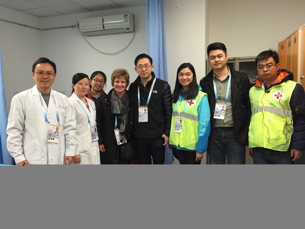 由于比赛时间跨度长,医疗队员们又要提前半小时到场,晚半小时离场,每天的工作时间就很长,有时甚至超过16个小时。感谢运动医学科的戈允申、李宏云、骨科的许耀、普外科的王雅平和姚冽、心内科的李剑医生和护士赵琦,作为国际滑联医疗官带队的主赛场医疗队,连续奋战7天,勤勤恳恳,任劳任怨;同时感谢张健医生带队的三林训练场医疗保障人员,包括普外科的朱磊和周易明、骨科的张帆、呼吸科的张媛媛医生以及护士顾妙娟。他们的辛苦付出为运动员的安全做出了贡献,也得到了来自克罗地亚的国际滑联医疗监督Dr. Sanda Dubravcic-Simunjak女士的高度肯定,认为华山是最棒的Team。