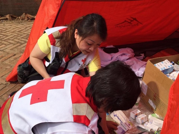 我们一行在武警分队陈队长的带领下与“明珠救援”交接后就迅速整理起他们余下的药品和医用材料,以了解在我们的物资还没有到达的情况下,如何更好地使用这些材料为灾民服务。
