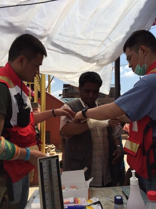 队员们将中国红十字会华山医院的旗帜悬挂在临时医疗点周围,很快就有受伤的尼泊尔民众听闻有中国救援队的巡诊消息迅速聚拢过来。该地区现仍无医疗队进入,灾民们通过其中的志愿者翻译告诉队员们,由于尼泊尔有受灾更严重的地区等待尼军方和政府的救援,他们早就盼望有国际救援组织的到来。