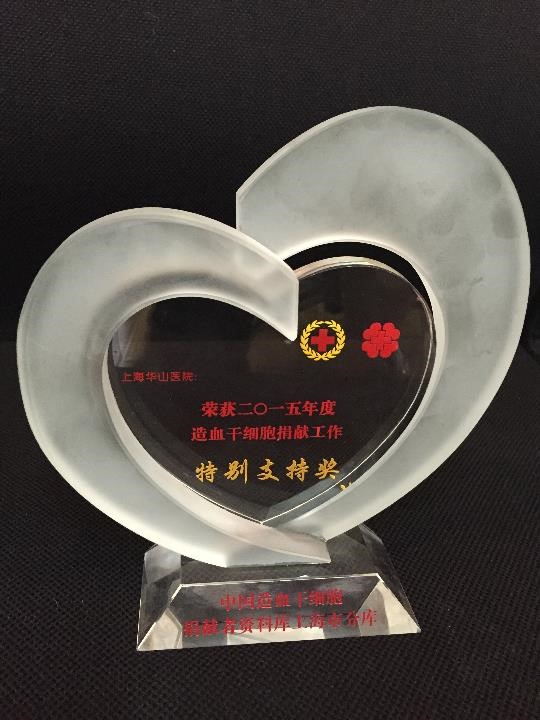 2015年5月8日是第68个“世界红十字日”,在南京东路世纪广场举行的“上海市造血干细胞捐献志愿者征募”活动中传来喜讯,华山医院被中国造血干细胞捐献者资料库上海市分库授予上海市“造血干细胞捐献工作特别支持奖”。