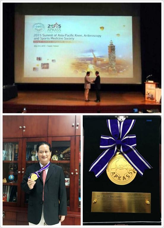5月8日至10日,2015亚太膝关节、关节镜及运动医学学会(Asia Pacific Knee, Arthroscopy and Sports Medicine Society,APKASS)高峰会议在台北举行,24个国家和地区代表参会,华山医院运动医学科主任陈世益教授在本次峰会上接手主席勋章,将从2016 年开始担任APKASS主席。这是第一位中国大陆医生担任这一国际协会主席,也是APKASS第三任主席。