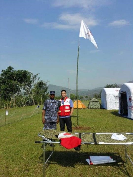我们能有这种级别的安保,主要归功于志愿者老毕。他进行了大量的协调工作,通过各种官方和私人的关系,不仅让我们使用到了直升飞机等军用设施,而且还充分依靠了当地的警力来协助工作。我们到达大本营的第二天,即有Dahding的公安副厅长带领Salyantar的公安局局长来到营地,探望我们,协调警力派驻等事宜。而且,我们野战医院的安保还不止这些,尼泊尔内务部的一位办公室秘书Sandoth先生会24小时协助我们处理可能遇到的问题。