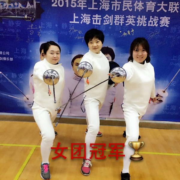 2015上海击剑精英挑战赛于5月16日在梅龙镇广场举行,由俞昳丽(口腔科)、周颖露(护理部)、张柔媚(药剂科)、姒怡冰(护理部)、诸焕颖(口腔科)、朱旻(北院检验科)、张沛骅(宣传科)组成的华山医院击剑队再次代表市卫生行业出战,取得白领速成组重剑女子团体冠军、男子团体亚军和女子重剑个人冠军的骄人成绩。这是继去年获得男团冠军,女团亚军和男单冠军后的再次亮剑,充分展示了华山职工知性、优雅、活力、时尚的健康形象。值得一提的是,在女子重剑个人项目中,我院俞昳丽和精神卫生中心蒋平奋力拼搏杀入决赛,分获冠亚军,体现出华山建设市医务工会击剑基地的初步成效。