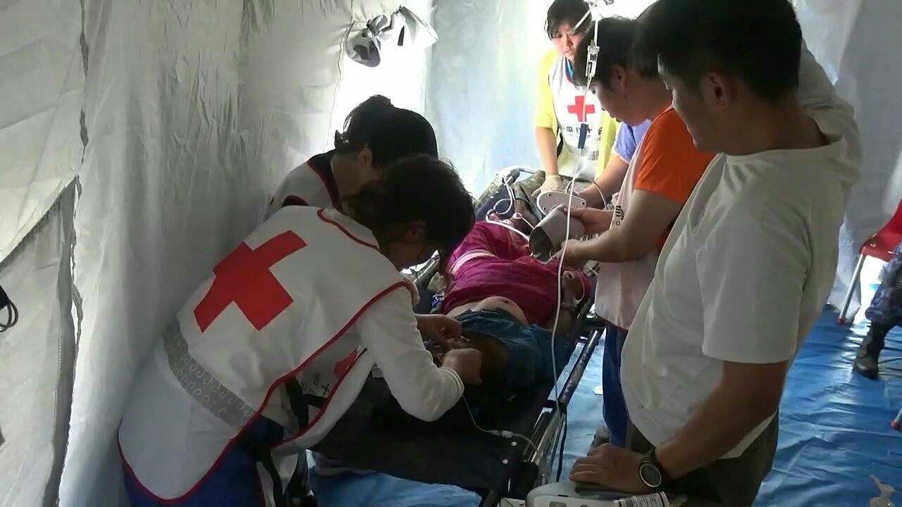 下午4点15分许,1名患者的到来打破了我们井然有序的工作节奏。这是一名在烈日下行走时突发倒地的老年女性,当时陪伴的家属虽然发觉情况不妙,但没有采取急救措施,只是四处奔走借来担架将老人抬送至我们营地。这时离老人昏倒已经有半个多小时了。