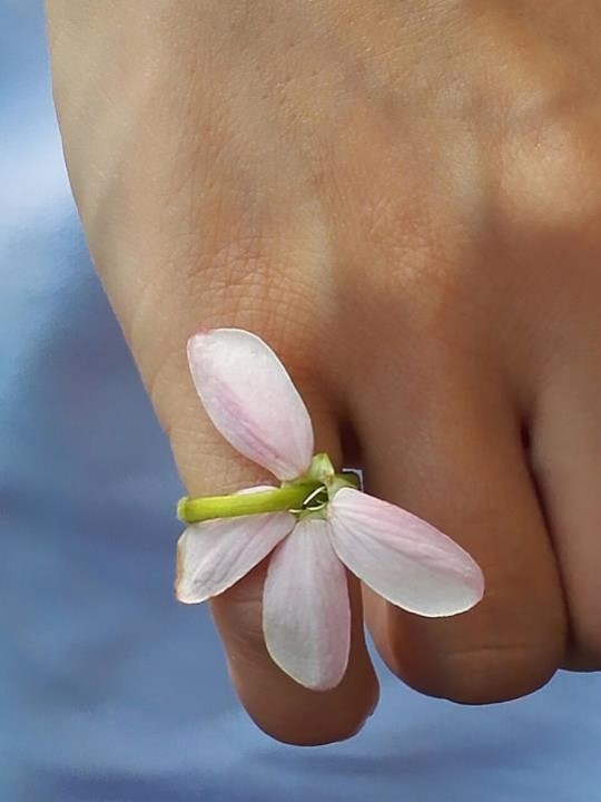 (当地小女孩送给曹医生的自制鲜花指环)
