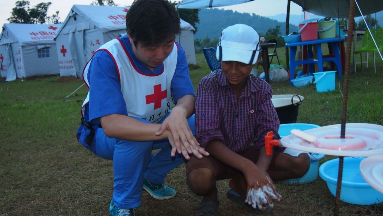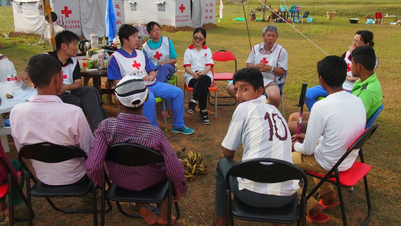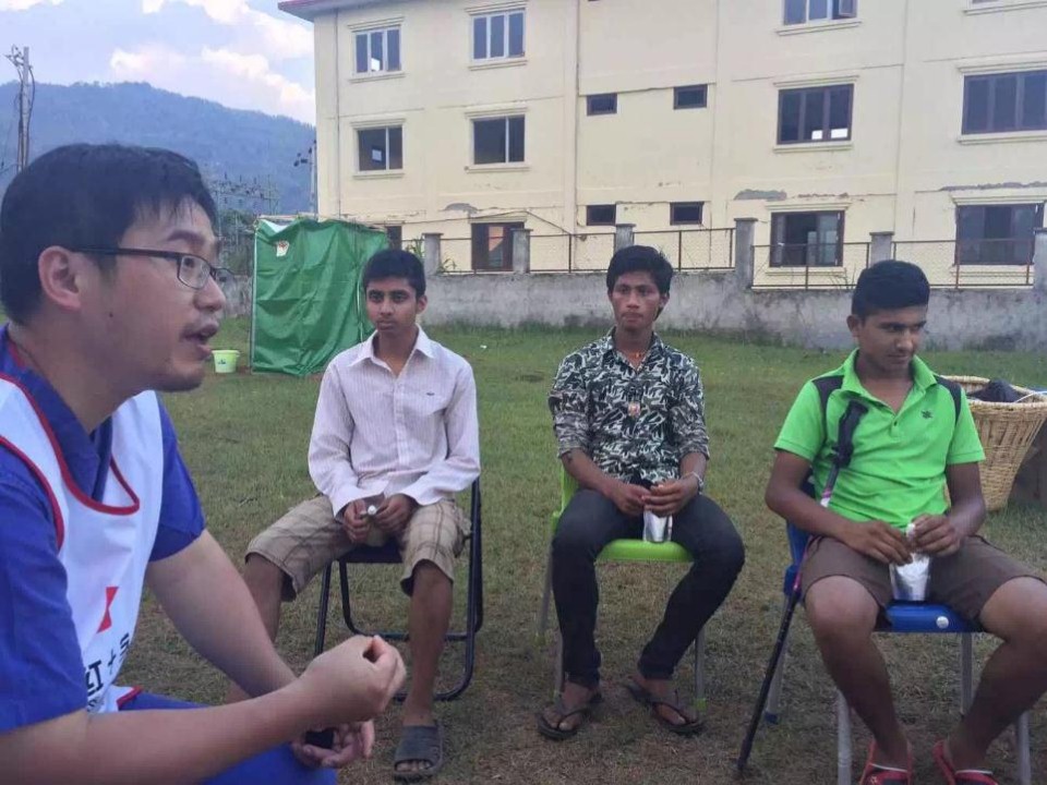 简短的相互介绍后,中国红十字会赈济救护部杨绪生副部长,也即尼泊尔救援队第二队队长,向年轻人们介绍了国际红十字运动。由于杨部长年轻时修的是英语专业,之后又多年在欧洲工作,英语表达既准确又生动,杠杠滴!与会的尼泊尔青年们听得十分专注。令我们意外的是,有一位尼泊尔中学生在参会之前甚至特地查阅了红十字会的有关历史,对杨部长介绍中的一些小提问竟能对答如流。事后,杨部长说,经过了我们这一次的救援及宣教工作,“红十字”会深深地在这些孩子心里扎上根,那会是一辈子的。