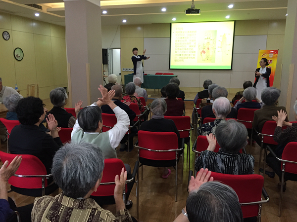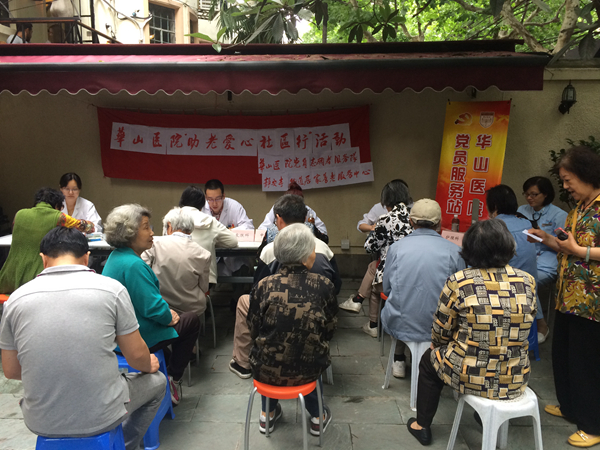 年初,医院党委积极响应政府号召,加入社区医养结合工程建设,与静安区居家养老服务站及周边的养老机构开展合作共建。在养老机构,银发苍苍的高龄老人看到华山的党员志愿者“送医上门”都感动不已,他们有的同时患有多种慢性疾病,不仅需要健康服务,更需要社会的关心。对于华山医生耐心细致的医疗咨询和通俗易懂的健康讲座,老人们感到非常满足,而让老年人“动手动脚”的保健养生操更是活跃了老人们的心情。看到八旬老人们在活动中像孩子一样积极,也提醒了志愿服务队,在今后的为老服务中要加入更多“快乐”的元素。
