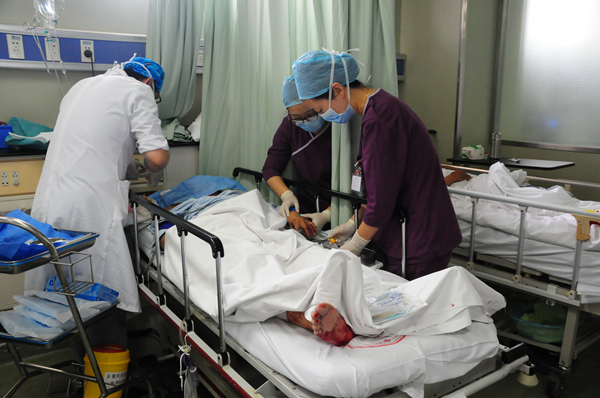 昨天中午44路公交车事故发生后,华山医院第一时间启动《重大公共事件紧急处理预案》,院领导、医务处及各相关科室专家立即投入紧张的伤员抢救。除第一批收治的11人外,昨天下午急诊又接收了1名从普陀区中心医院转来的男性伤者,为第一批伤员中一位女性伤者的爱人。
