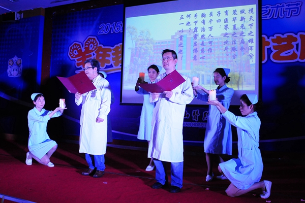 流光溢彩的舞台,掀翻房顶的喝彩,39位科室及部门主任、副主任携团队依次闪亮登场,用各具特色的才艺表演展示科室文化和领头羊的才情。有小组唱、歌舞、音乐小品,也有脱口秀、诗朗诵、书画太极,还有默契的情景剧表演。平时站在台上严肃地汇报工作的主任们此刻站在舞台上,或激情四射,或柔情似水,或妖娆妩媚,或帅气逼人。21档精心编排、融入学科特色的节目亲切感人,高潮迭起;男神女神各显神通,比拼魅力;部门工会积极组织,爆棚人气。主持人的现场采访串联更是满足了满场观众的心意。