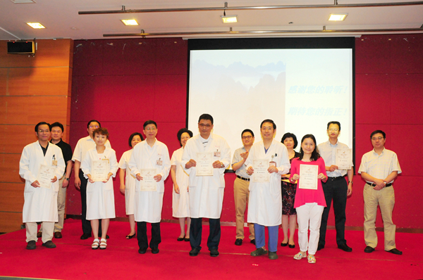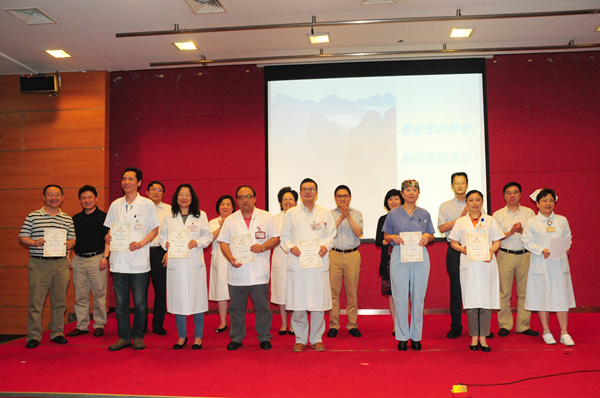 “羊年我来秀——科室领头羊风采才艺展示”活动特设的主任人气评选经过统计,结果在院周会上揭晓,其中24位主任获“羊羊”奖,15位主任获“羊羊”提名奖,丁院长和顾书记率领导班子为获奖者颁奖。