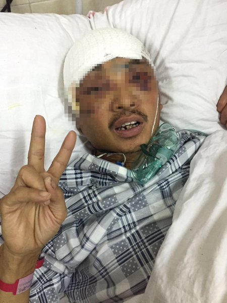 这名40岁的男性患者来自四川,在迪庆某建筑工地打工,27日下午不慎从8米高处坠落,急送州医院急诊。头颅CT发现右侧额骨、颞骨线形骨折,右侧眼眶外侧壁、颧弓骨折,颅底多发骨折,右颞硬膜外血肿,右额颞叶脑挫裂伤,少量蛛网膜下腔出血。28日上午,家属从成都赶来。曾经在华山医院神经外科进修过1年的松主任告知家属,由于设备等原因,这类手术以前从未在州医院开展过,保守治疗或许能挽救病人的生命,但右眼视力恐怕保不住,转院去大理的医院路上也有不小的风险。同时告诉家属,华山医院医疗队来了。已经在联系转院的家属听说华山医院专家在此巡回医疗,希望能请华山专家主刀手术。
