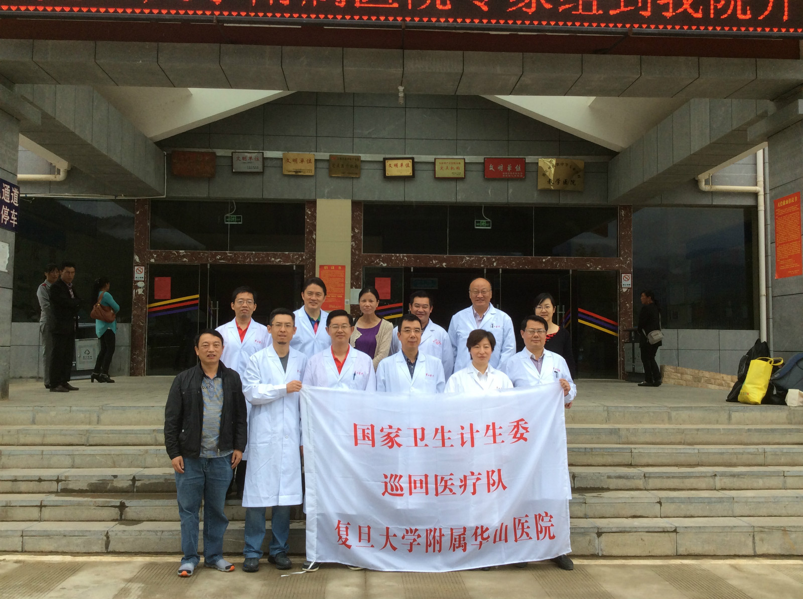 (图为医疗队与维西县卫生局赵书记县医院两位杨院长合影)