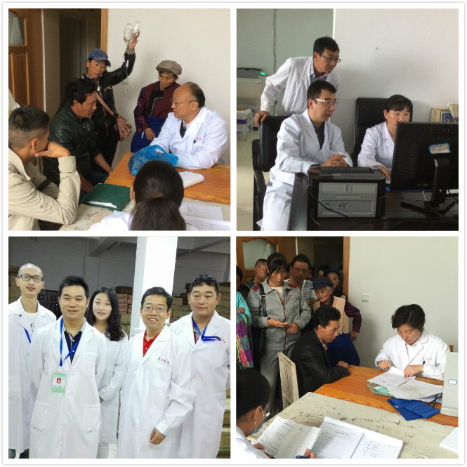 由于事先得到华山医院专家到维西巡回医疗的通知,前来找专家咨询诊病的患者络绎不绝。对专家们来说,这些都是初诊病人,从了解病史、体格检查到综合分析,并且还需要更多的解释以帮助患者理解,工作强度是很大的。就在上午门诊快结束的时候,有一位年届九旬的纳西族老人在小辈的陪伴下,一路打听哪里有看皮肤科,正在内科诊室的陈勤奋副教授忙和自己的病人打声招呼,把老人送到皮肤科李锋副教授的诊室。李教授一边诊病,一边带教县医院同行,还把带来的华山医院自制制剂送给老人。老人乐呵呵地告诉我们,他是离休干部,去年被中组部评为全国离退休干部先进个人,去北京领奖,还登上了长城。原来,他是个有故事的老人呢,回来检索网络,这位赵鹤阳老人出生于1926年6月,1949年3月参加革命,1958年5月入党,积极响应党中央支援边疆建设的号召,主动要求到祖国的边疆、边远贫困山区工作。在维西县半个多世纪,离休近30年,为基层群众做了很多很多好事、善事,赢得了干部群众的敬重和信赖。诊疗完毕,老人开心地戴着去年登长城的太阳帽,和医生们合影。能实实在在为藏区百姓服务,专家们都觉得忙并快乐着。