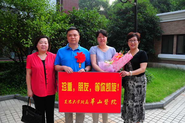 上午6点半,华山医院耿道颖副书记、党办王晋伦主任代表医院来到上海市干部教育中心管理处送行,并向孙韬医生和他的妻子致以诚挚的感谢,并亲切地祝福孙医生在新疆工作顺利,愿他能将诊疗技术带到西部,以华山特质的精神内涵感染队伍,发扬医者馨德,延续沪疆情谊。