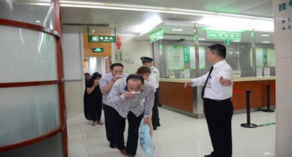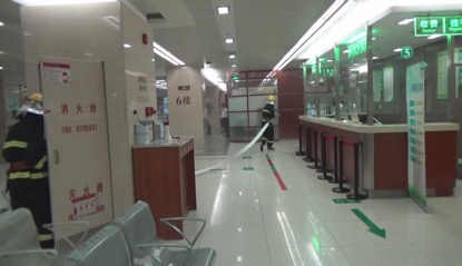 8月21日晚6时整,一声令下,门诊6楼一厕所烟幕弥漫,巡楼保安及时发现“火情”,立即就近按下消防手动报警按钮,刺耳的警铃声响起,人群惊慌失措。医院消防监控中心收到保安的对讲机呼叫“门诊六楼发现火警,请速增援”,监控中心瞬时成为指挥中心,一条条指令快速、准确地发出。相邻楼层的保安第一时间急停上下行的自动扶梯,并站立扶梯口,阻止“病人”进入。消防疏散广播响起“各位人员请注意,现6楼发生火灾,请各位人员不要惊慌,听从现场工作人员指挥,就近撤离”。