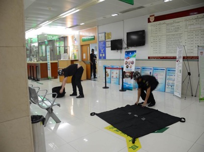 当时针指向晚7时,另一场紧张的治安防爆演练正式开始。门诊6楼“医生”发现可疑包裹,立即报告楼层保安。经初步判断,疑为可疑爆炸物。治安应急小分队接警后,立即出动,携带防爆毯火速赶赴警情现场;同时,警戒组迅速拉起警戒线,严密注视着外围情况;疏散组则有条不紊地在警戒线外疏散人员。保卫处根据现场情况,组织身着防护装备的搜排爆队员对可疑爆炸物进行确认,判断起爆方式,查明爆炸物可以转移不致发生爆炸,随即队员将爆炸物转移到空旷区域,盖上防爆毯。警情解除。整个演练历时2个小时,共50余人参与。