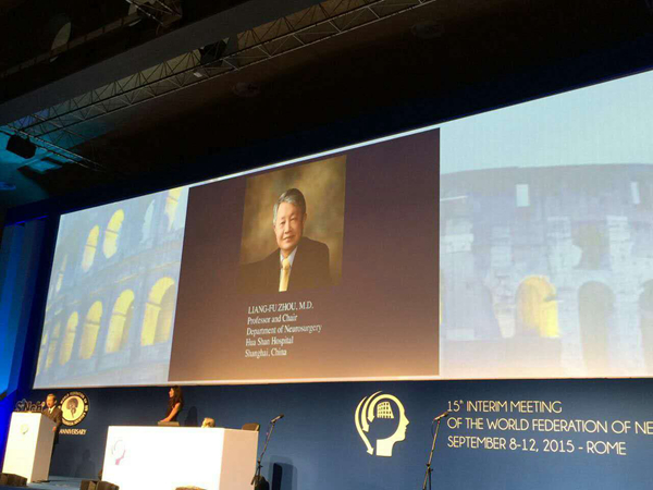 Federation of Neurosurgical Society,WFNS)中间会(Intermeeting)现场传来喜讯,华山医院神经外科主任周良辅院士荣获世界神经外科学会联盟荣誉奖章!