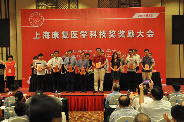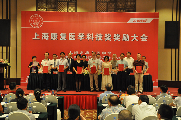在8月14日举行的第五届上海康复医学科技奖励大会上,我院康复医学科姜从玉主治医师领衔的《经皮胃造瘘术联合吞咽康复训练改善社区中中重度吞咽功能障碍患者吞咽功能的新技术》项目荣获上海康复医学科技奖二等奖;康复医学科主任吴毅教授荣获2015年“引领专科康复——优秀学科带头人”;康复医学科荣获2015年康复治疗师教育“优秀师资团队”。上海市康复医学会会长、华东医院院长俞卓伟教授,华山医院手外科主任、中国工程院顾玉东院士及上海市卫生计生委吴乾渝副主任等领导专家到会为获奖者颁奖。