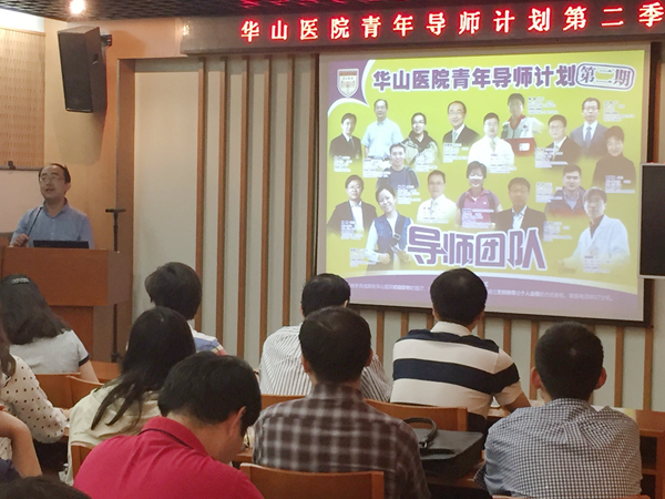 华山医院青年导师计划旨在充分发挥青年导师的集聚优势、示范效应,鼓励优秀青年用自己的成长故事和人生感悟影响广大低年资团员青年,引导他们树立正确的世界观、人生观、价值观,敢于做梦、勇于追梦、勤于圆梦。继2014年首期推出“青年成长·共圆梦想——华山医院青年导师计划”之后,第二期青年导师计划于2015年9月正式启动。本期共有青年导师17人,均为40岁左右的华山各科青年才俊;学员44人,其中入院1-2年的新职工26人,基地学员18人。团委希望导师计划能够成为学员们迷茫时的指路明灯、受挫时的心灵鸡汤,让导师永葆青春活力,使学员得到更快成长。