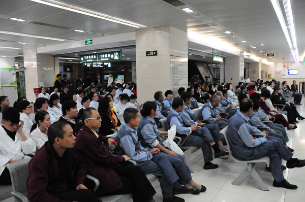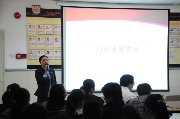 11月4日晚上,完成万名门诊病人就诊服务后的华山医院门诊部依然灯火通明,包括护士、挂号、收费、药房、便民服务中心、辅助部门、保安、保洁、电梯员在内的10余个部门200余名工作人员参加了门诊部的专项业务培训。本次培训主题是突发事件应急处置,内容涵盖消防安全、袭医事件处置、病人突发情况处置以及门诊防跌倒实施方案。理论学习要求大家掌握规范的做法,特别增加的现场演练环节可以让大家提升处置能力。
