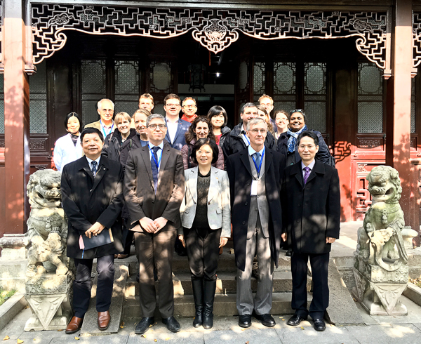 为促进中英双方在抗菌药物耐药领域的合作与交流,国家自然科学基金委员会(NSFC)与英国研究理事会(RCUK)于11月23日~26日在上海召开了“抗菌药物耐药”中英双边研讨会,华山医院抗生素研究所所长王明贵教授为会议中方协调人。26日上午,在王明贵教授的陪同下,英国研究理事会主任Jonathan Pearced带领理事会各成员及来自英国剑桥大学、帝国理工和诺丁汉大学等著名学校的资深科学家一行20余人来院参观交流,受到了邵建华副院长、国际合作交流办林建华主任的热情接待。
